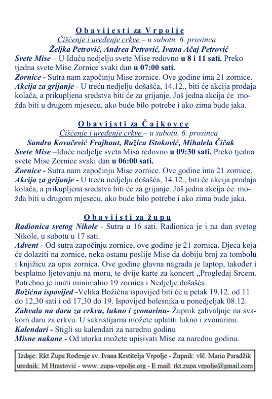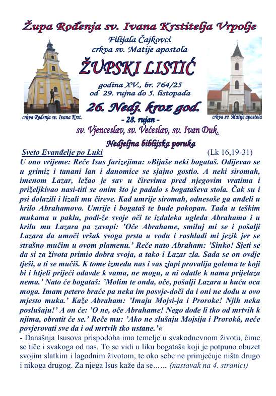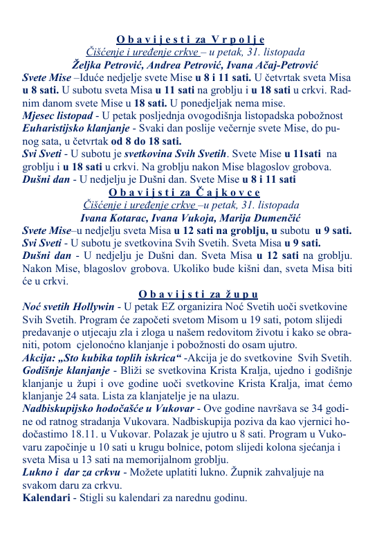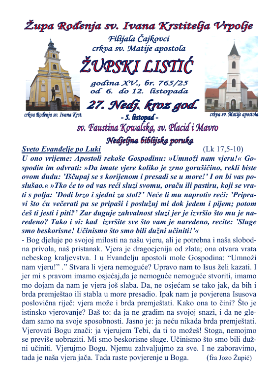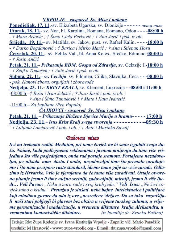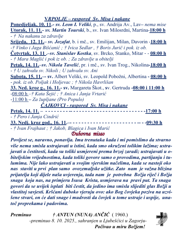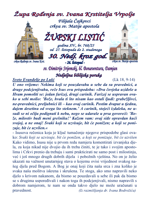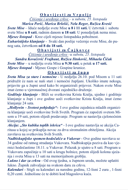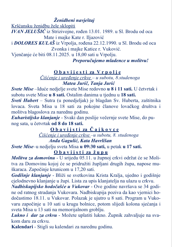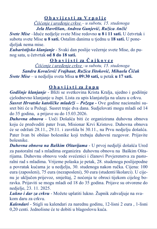 Župne obavijesti 16.11.2025. 18. studenoga 2025. by admin·0 Comments Župne obavijesti u PDF-u preuzmite OVDJE