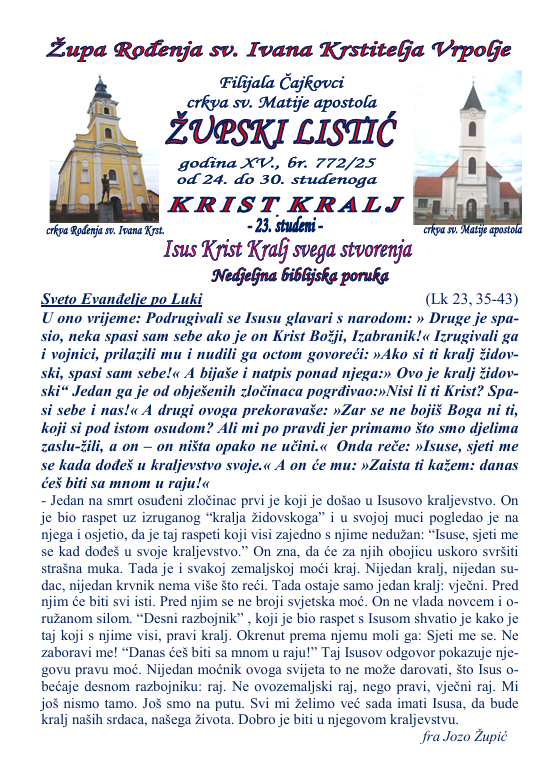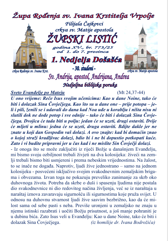 Župne obavijesti 23.11.2025. 22. studenoga 2025. by admin·0 Comments Župne obavijesti u PDF-u preuzmite OVDJE