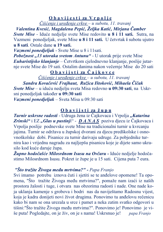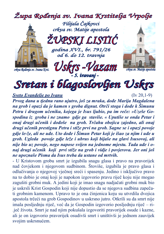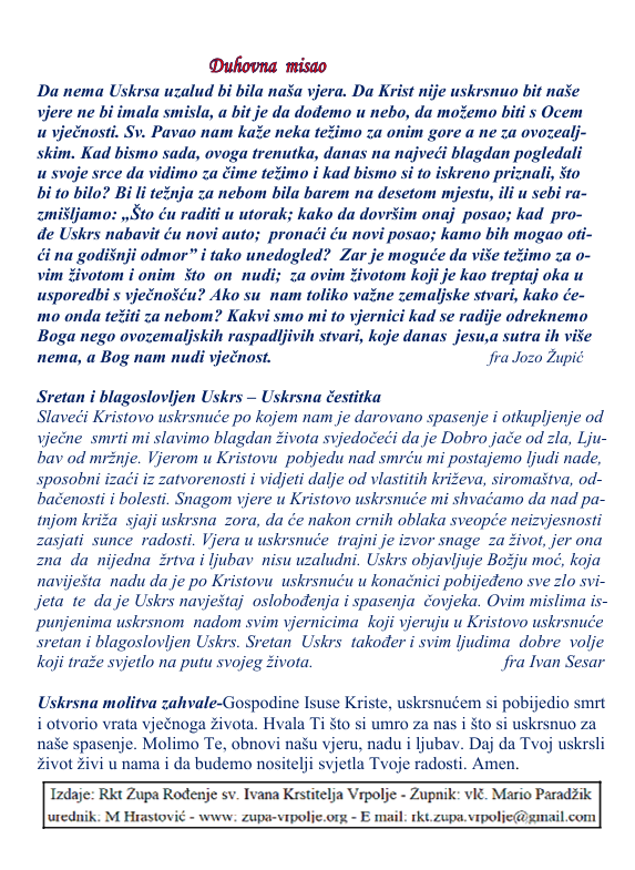 Župne obavijesti 05.04.2026. 7. travnja 2026. by admin·0 Comments Župne obavijesti u PDF-u preuzmite OVDJE